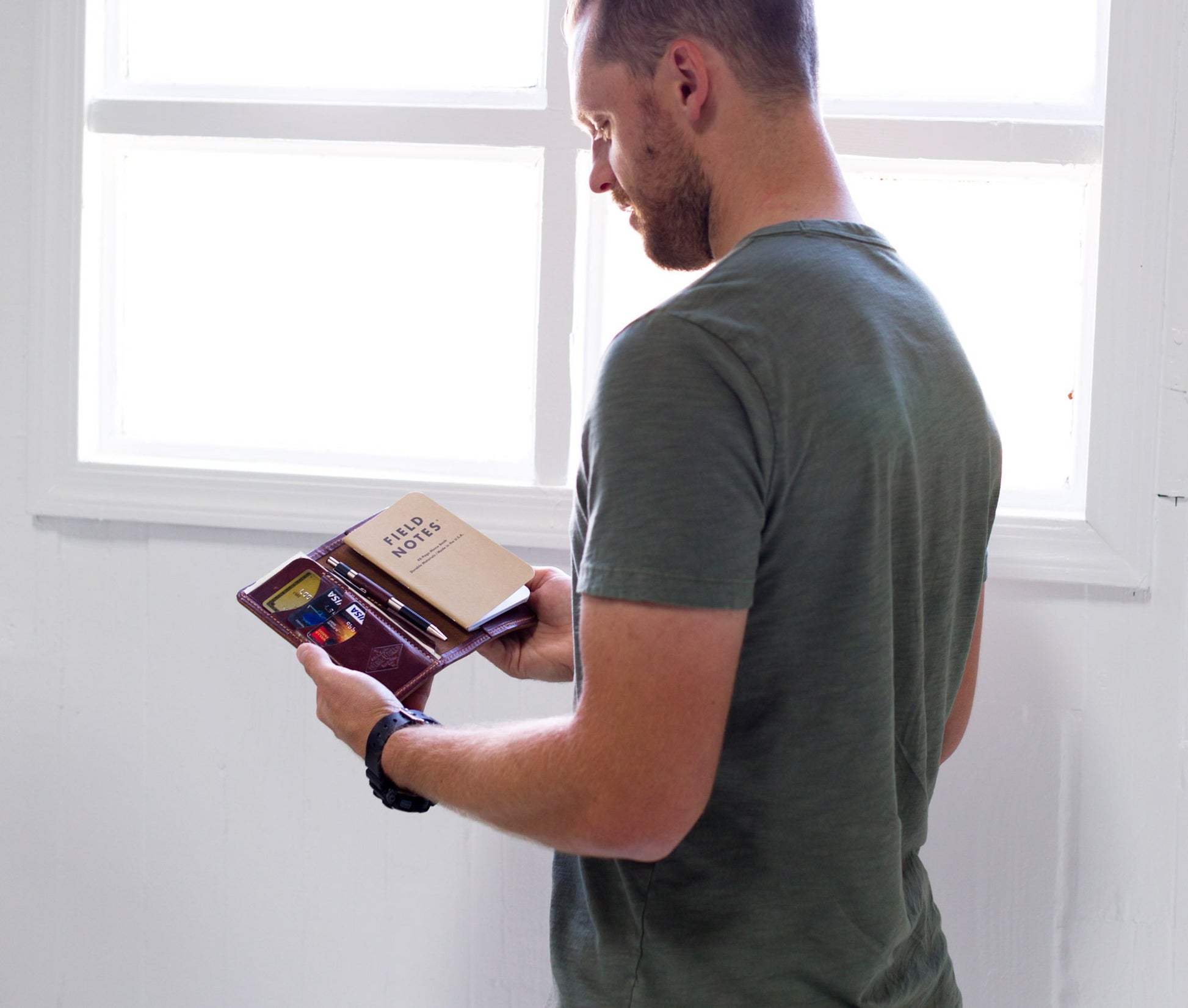 The Field Notes Wallet combines timeless style with everyday functionality. Crafted from premium full-grain leather, it’s designed to hold cards, cash, receipts, and even a passport. Complete with a Field Notes journal and Zebra pen, it’s perfect for jotting down goals, notes, or client details.